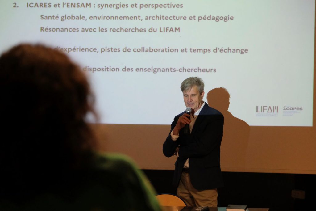 - L’ENSAM a eu le plaisir d’accueillir, le 30 septembre 2025, l’équipe de l’institut ICARES -Comprendre, Anticiper, Intervenir en environnement et santé globale pour un temps de présentation et d’échange intitulé Co-construire aujourd’hui l’habitat de demain. Environnement, santé globale et architecture, qui a permis d’imaginer de futures collaborations entre recherche, pédagogie et projets communs.