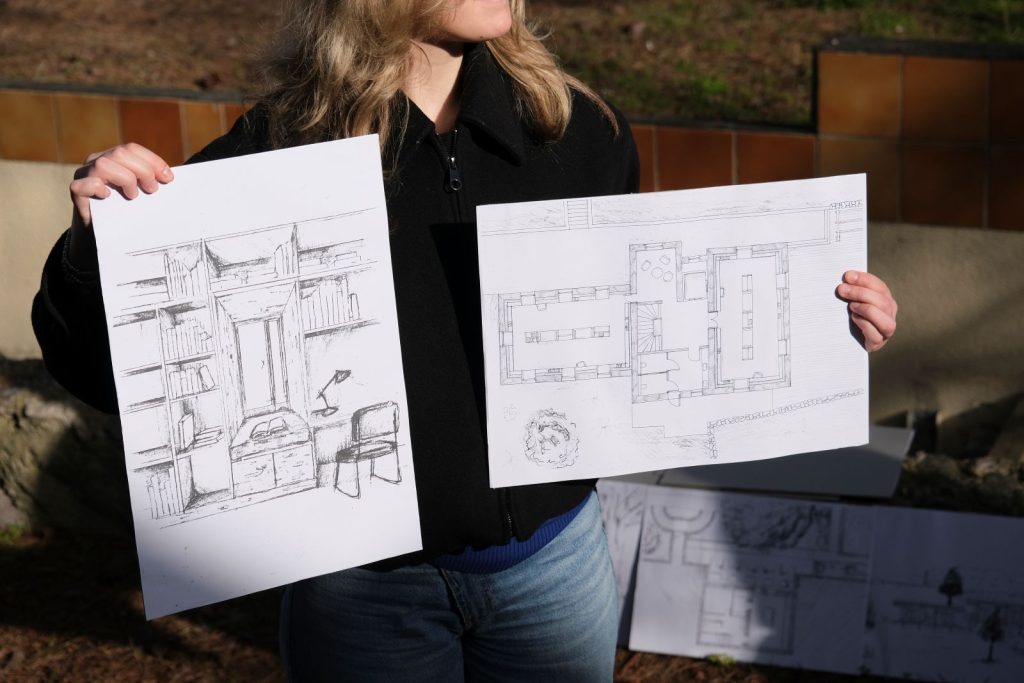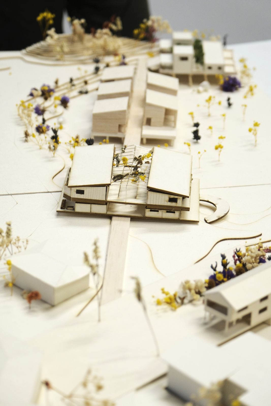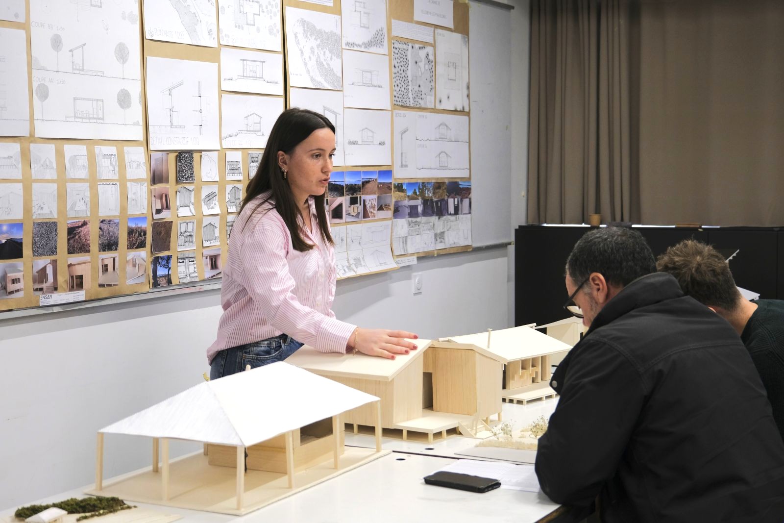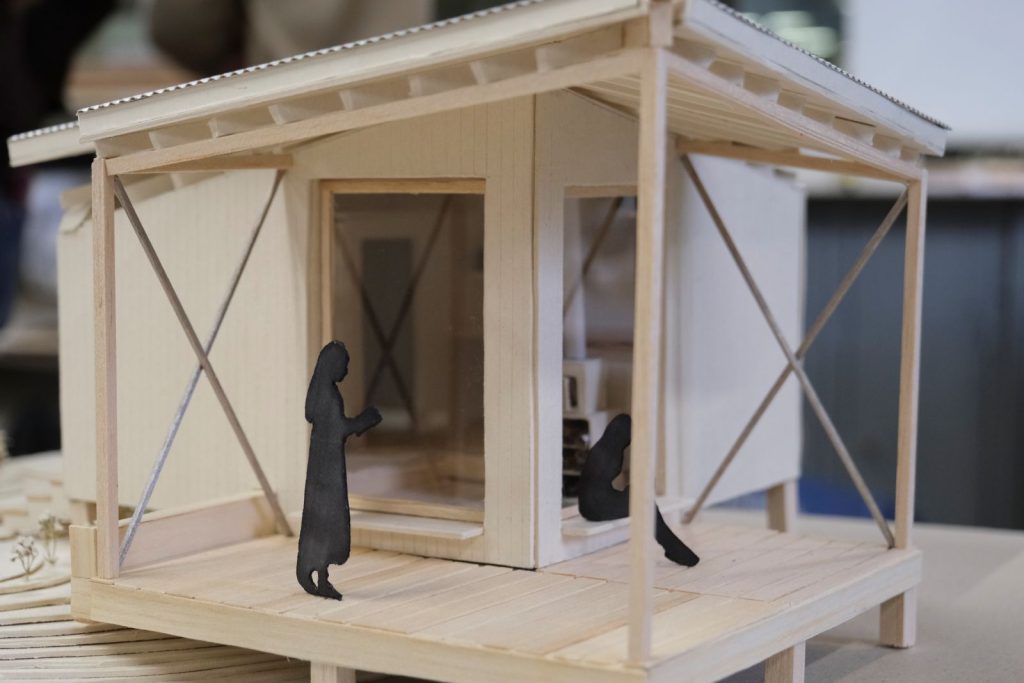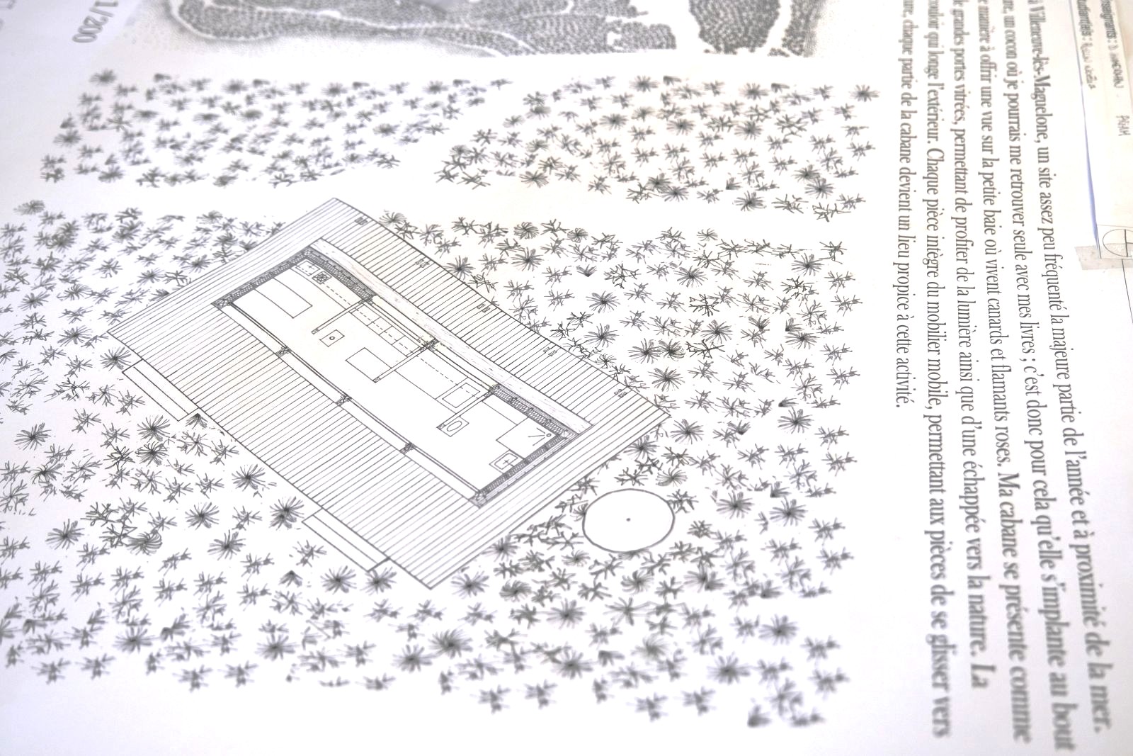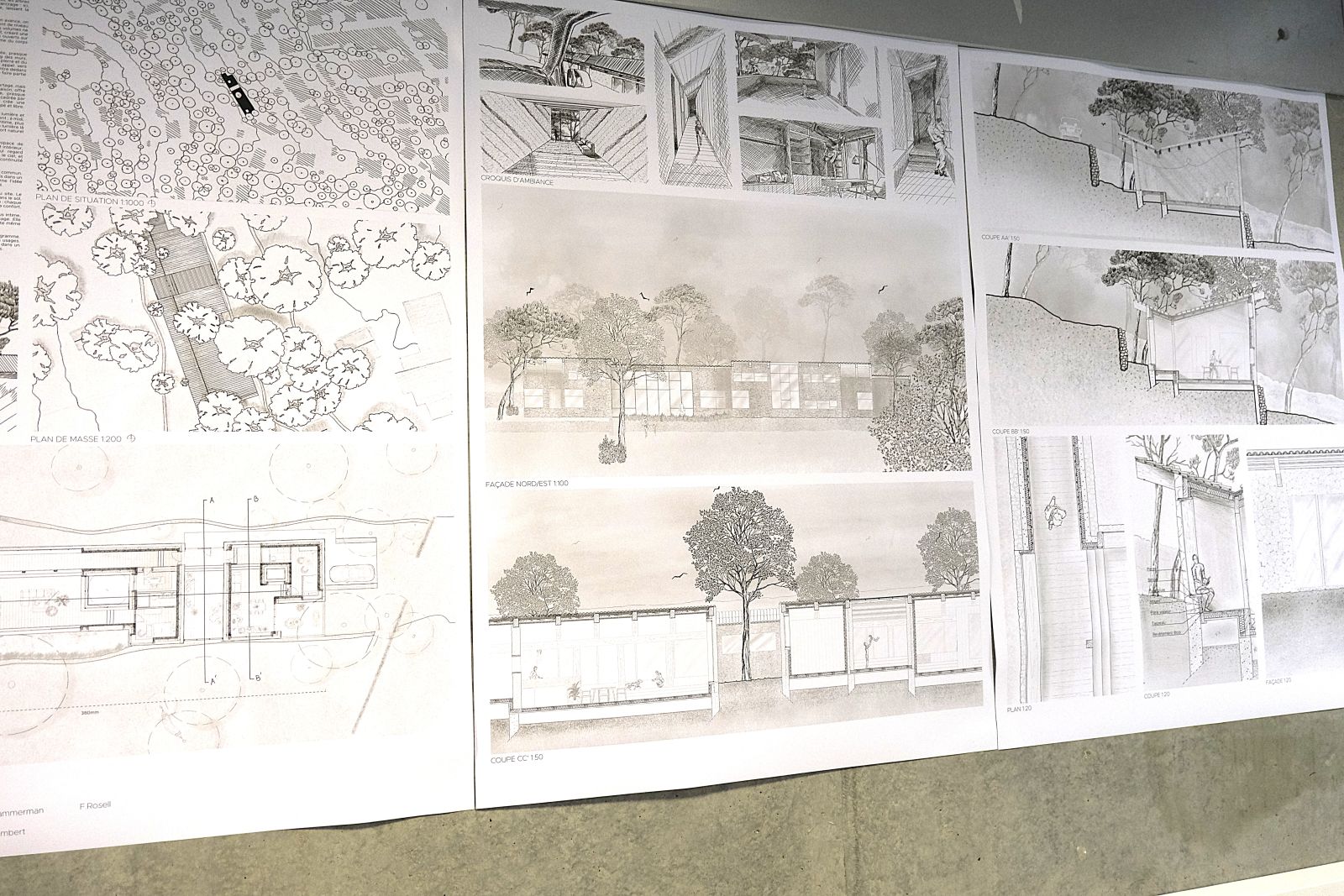Après ce premier travail de découverte et relevé du site, les étudiants en L1 pensent leur premier projet d’architecture : proposer un espace pensé comme une cabane pour y trouver refuge située sur les rives de l’Orb, telle une unité d’habitation avec un espace de sommeil, un espace de détente dédié à une activité (lecture, yoga, boxe, peinture, céramique…), une cuisine et un espace sanitaire en ossature bois. Le tout a été présenté à travers des croquis, plans, coupes, élévations à main levée sur calques et maquettes.