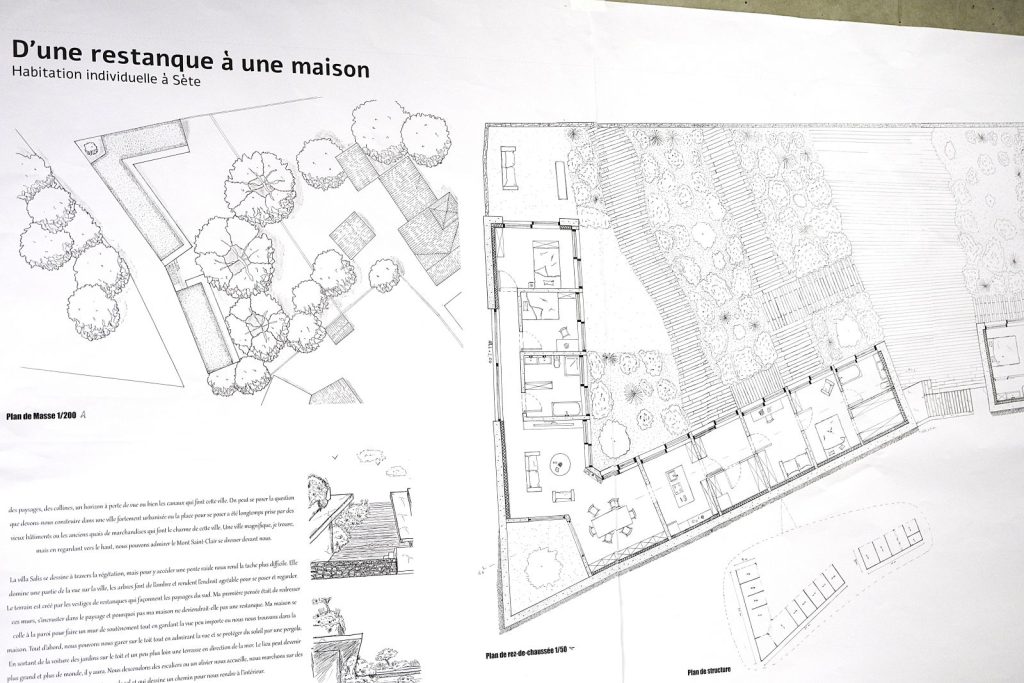 Ce travail d’abord collectif évoluant vers une démarche individuelle, fondée sur l’échange et la discussion s’est situé à la Villa Salis de Sète sur le Mont Saint Clair afin de requalifier cette ancienne auberge de jeunesse en un nouvel équipement. Les présentations des travaux se sont déroulées in situ afin de rentrer en dialogue avec le site et le projet. Les étudiants ont rivalisé d’inventivité pour leurs présentations : chasse au trésor, mise en situation, cadrage sur le paysage, récits et jeux pour appréhender le site.